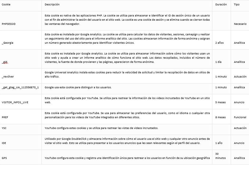 Para más información sobre Mozilla Firefox pulse aquí: https://www.mozilla.org/es-ES/privacy/websites/#cookies